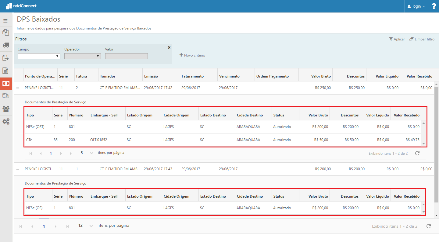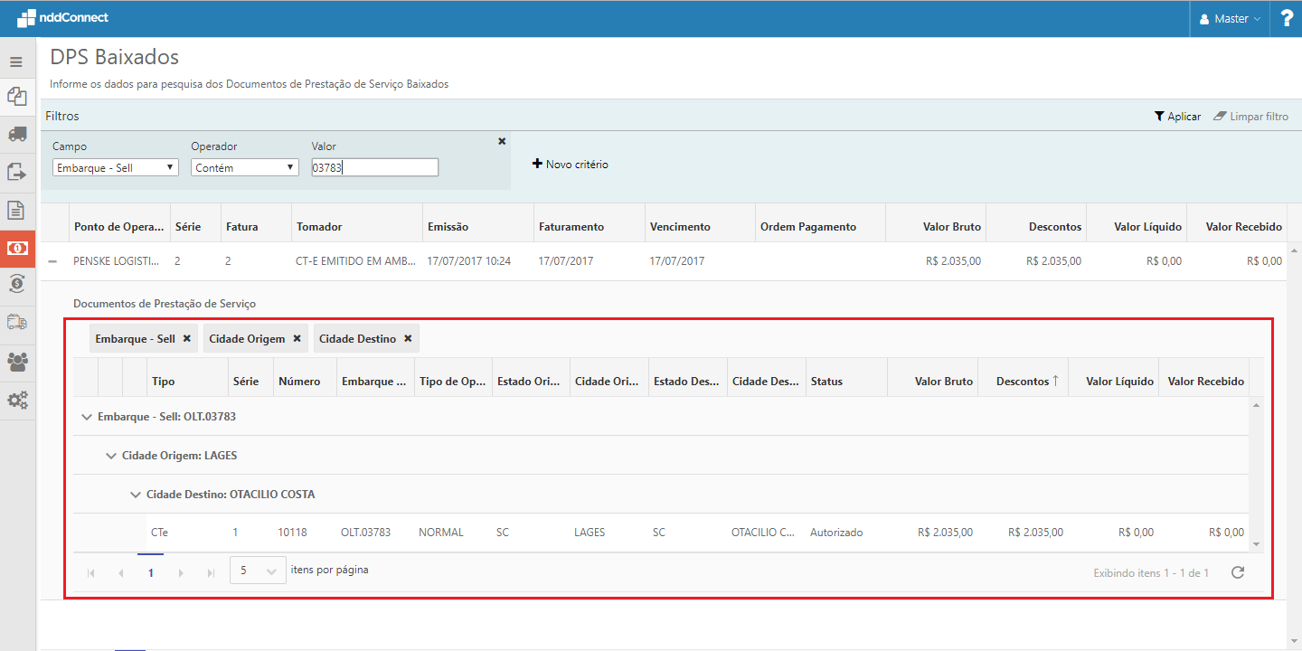 Na subgrid dos DPS's baixados, na aba de documentos originários foi incluso a informação de Embarque - Sell, permitindo agrupar pelas colunas, sendo por padrão o Embarque - Sell, podendo ser filtrado pelo mesmo.