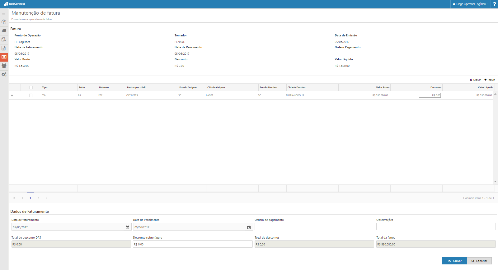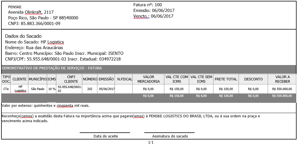 •Download DocCob: Através do download é possível obter os dados da fatura no layout configurado no 'Cadastro de Cliente'; •Cancelar: Ao cancelar uma Fatura todos os documentos nela relacionados irão retornar para o status anterior, podendo ser incluídos em uma nova fatura; •Fechar Fatura: O fechamento da fatura é obrigatório para geração do número e série da fatura. Após o fechamento, serão disponibilizados os dados para o Embarcador e para o Legado. Uma vez a fatura fechada, não é mais possível editá-la; •Aprovar Fatura: A aprovação está relacionada com a confirmação da mesma por parte do cliente referente a cobrança que será efetuada. |