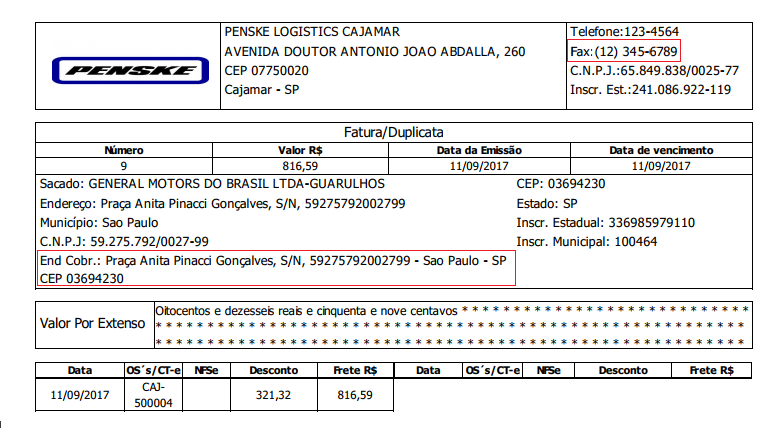 Incluído a capa de fatura as seguintes informações: •Fax (capturado do ponto de operação); •Endereço de cobrança (capturado do tomador: Logradouro, número, complemento, cidade-estado e CEP).