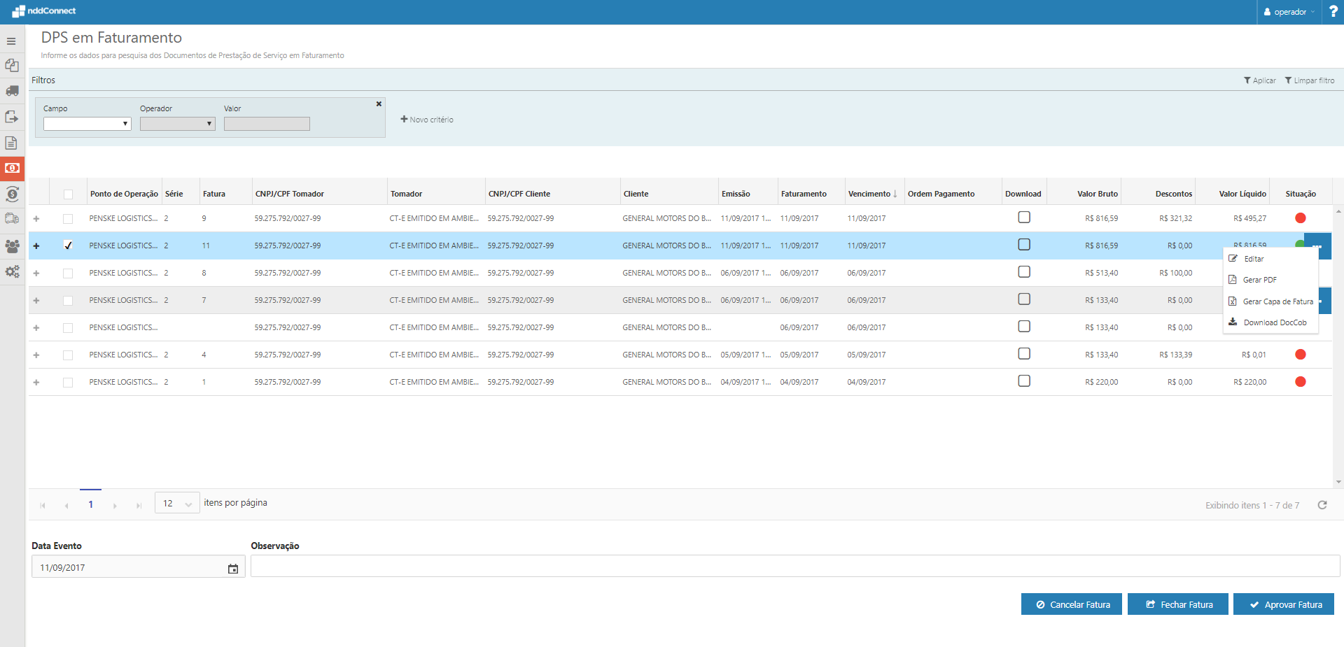 Incluído a opção "Gerar Capa de Fatura" no menu de contexto: