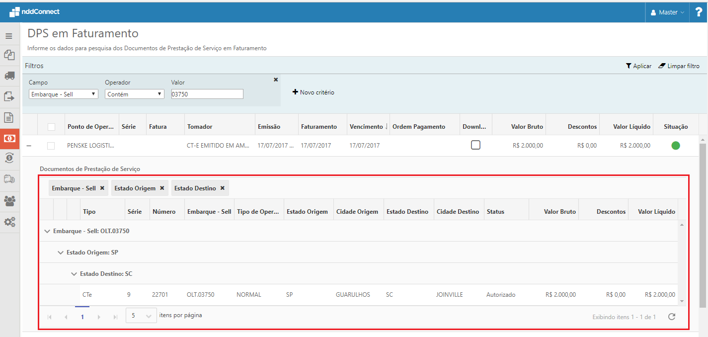 Na subgrid do DPS em faturamento, na aba de documentos originários foi incluso a informação de Embarque - Sell, permitindo agrupar pelas colunas, sendo por padrão o Embarque - Sell, podendo ser filtrado pelo mesmo.