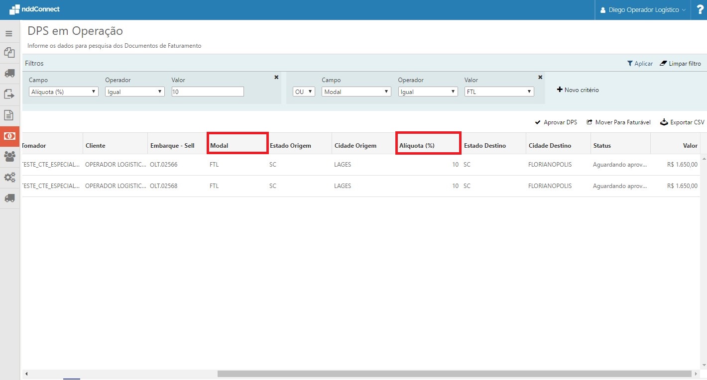 Acrescentado o botão "Exportar CSV" que permite exportar as informações do DPS em Operação durante o processo de faturamento manual, para que possa manipular as informações e disponibilizar aos clientes conforme necessário.