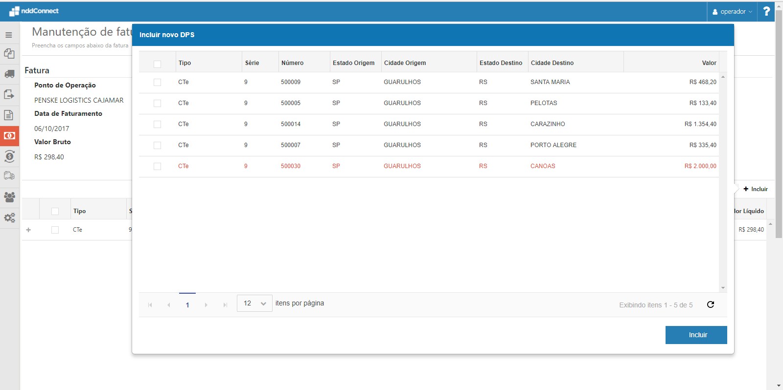 Navegação: Entrega 12 - Query Report - Aging - Markup > Portal do Operador Logístico > Gestão de Faturamento > Faturamento