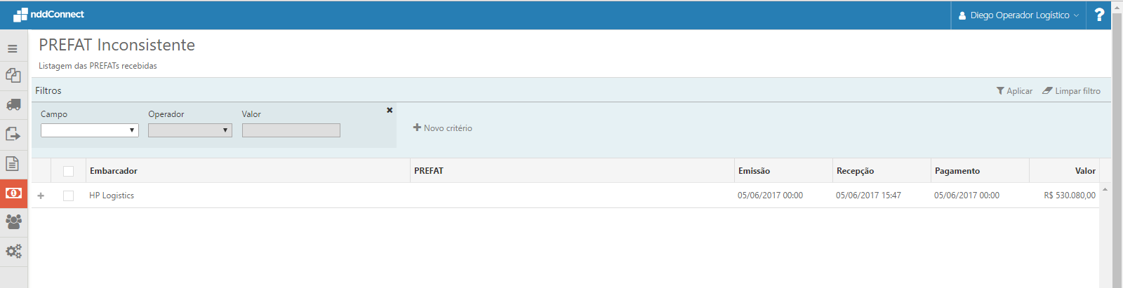 Serão exibidas nessa tela as PREFATs com as seguintes situações: