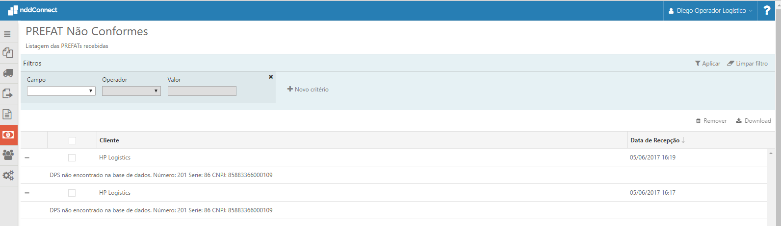 Através dessa tela é possível realizar o download do documento não conforme para que seja possível analisá-lo.