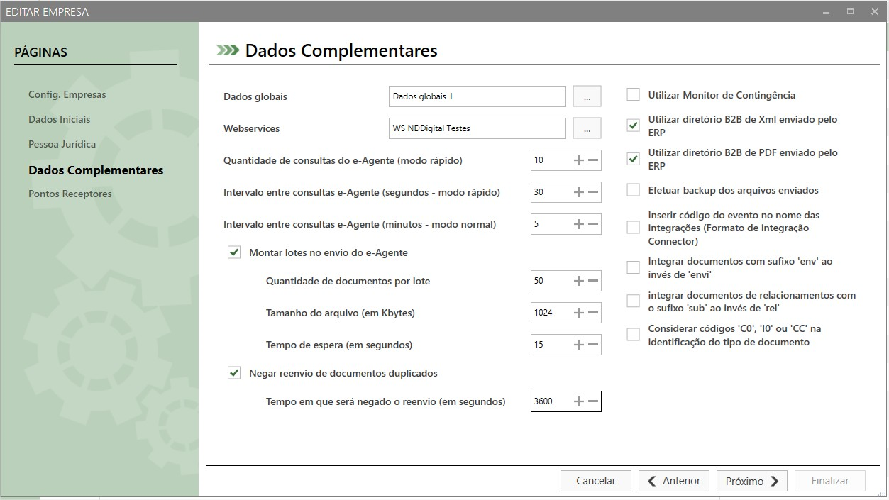 Nesse tela selecionamos os Dados Globais e Webservices que serão utilizados pela empresa.