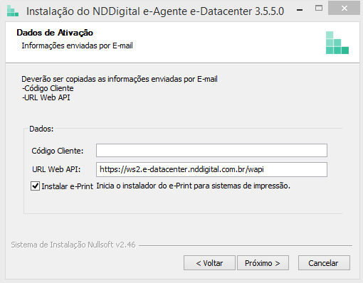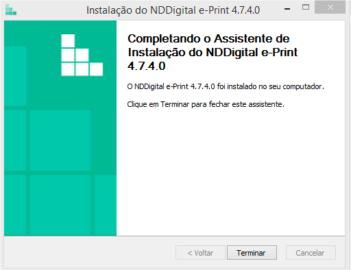 Observação: Se durante a instalação for marcada a opção Instalar e-Print – Inicia o instalador do e-Print para sistemas de impressão (explanada no passo 3), após concluir a instalação do e-Agente, será dado início à instalação do e-Print.