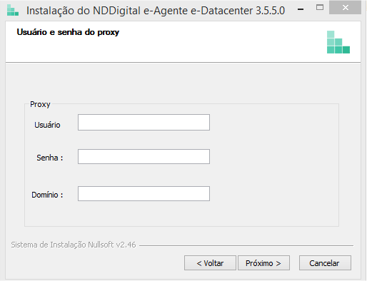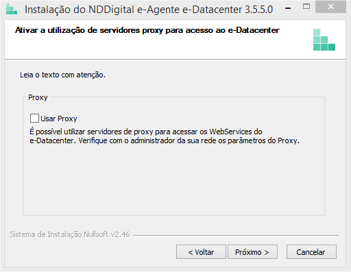 Passo 5: Na tela seguinte será solicitada a confirmação para utilizar comunicação com os WebServices da NDDigital através de servidores de Proxy.