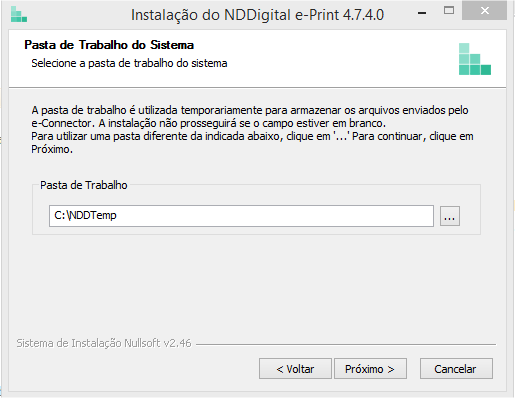 Passo 11: Diretório de trabalho do sistema: Digite o caminho desejado ou clique no botão “...” para procurar o diretório. Após isto clique em “Avançar”.