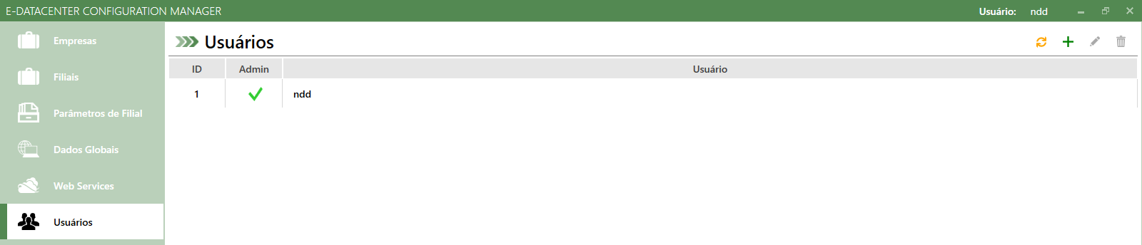 •Nome: Preencher com nome de usuário que será informado para realizar o login no Configuration Manager; •Senha: Preencher com a senha que será informada para realizar o login no Configuration Manager; •Confirme a Senha: Preencher com a mesma senha que será informada para realizar o login no Configuration Manager; •Usuário Administrador: Com essa opção habilitada o usuário terá acesso a todas as configurações do Configuration Manager, caso contrário o usuário terá acesso apenas as abas de Empresa e Filial.