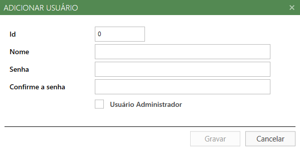 Será exibida a janela Adicionar Usuário, veja imagem abaixo: