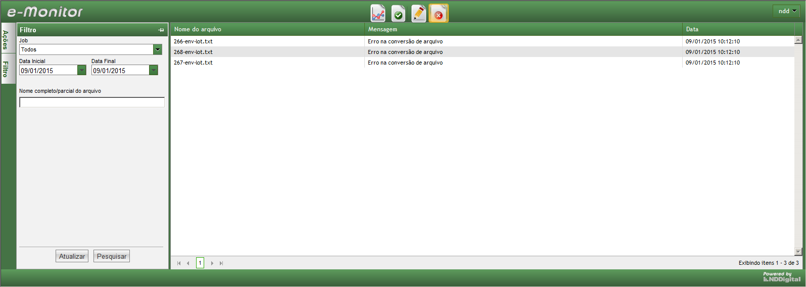 Nesta aba são exibidos os documentos capturados que apresentarem problemas de validação.