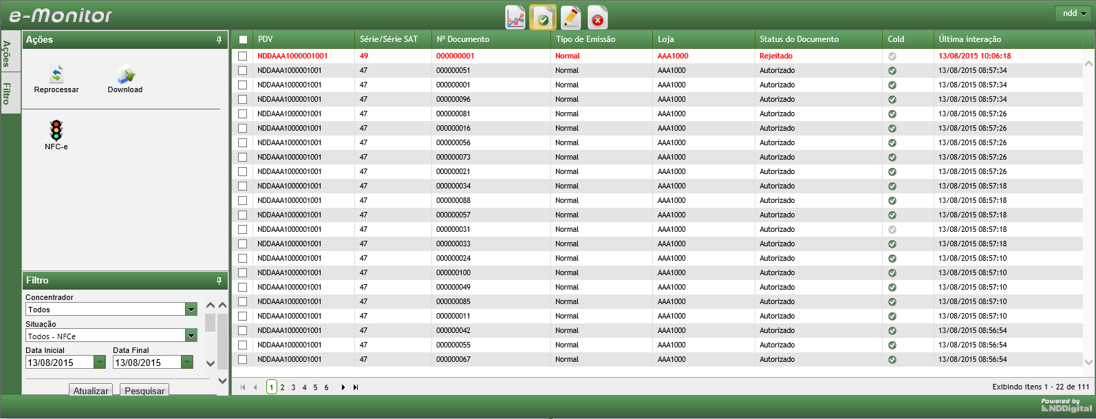Nesta aba são exibidos todos os documentos processados pela solução e que não apresentaram erro na validação. Cada coluna é referente a dados informados na massa e provenientes da configuração no Connector Settings. Consiste em: