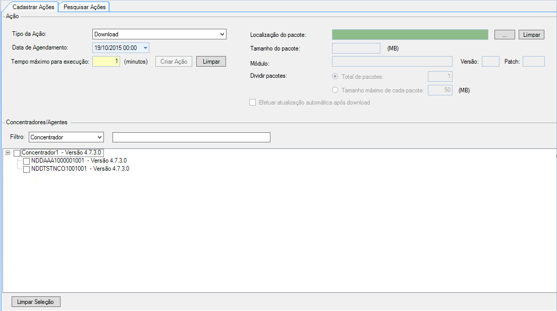 | • | As informações "Versão", "Patch" e "Módulo" serão preenchidas automaticamente após a seleção do pacote do passo 4. |