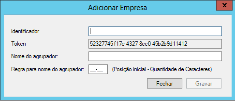 Regra para nome do agrupador: Nesse campo conterá a posição inicial e tamanho do campo que deverá ser extraído do identificador (chave do e-agente) disponibilizado na tabela de entrada (tbdatabaseinput). (Ex: 5-10).