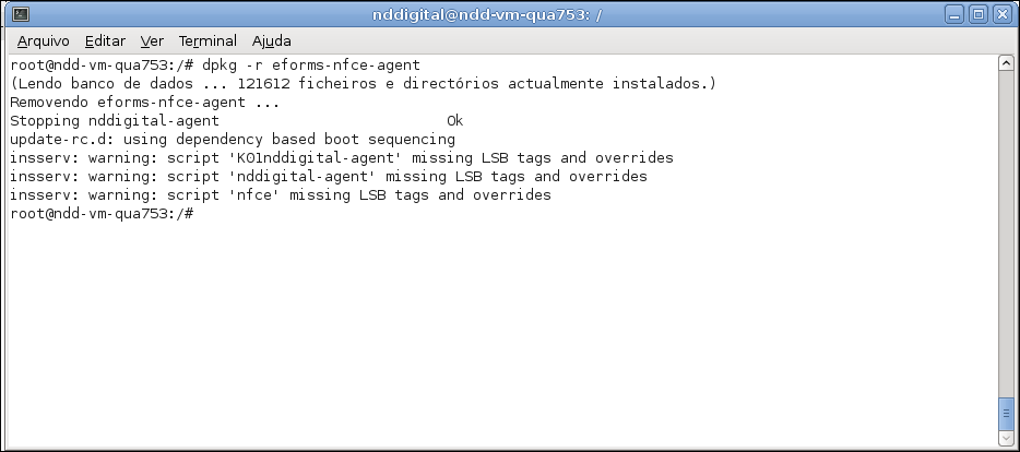 Passo 1: Para desinstalar o Agent NFC-e, acesse o terminal e execute o seguinte comando para desinstalar: