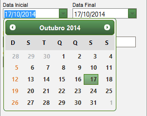 São utilizados para filtrar os documentos por um intervalo de tempo, pode realizar a pesquisa pela data que os documentos foram emitidos ou através da data de processamento. O preenchimento dos campos data inicial e data final pode ser realizada de acordo com a necessidade de cada usuário, podendo ser informado qualquer intervalo de dias sem limitações, porém, se o usuário realizar uma pesquisa que o total dos documentos seja superior a 200 mil, somente será permitido à consulta por um intervalo de até 20 dias, não respeitando este intervalo de dias será interrompida a pesquisa, e uma mensagem será exibida ao usuário informando que a quantidade de documentos encontrados é superior ao máximo permitido, e solicitará ao usuário que informe um filtro mais específico ou um intervalo de datas menor ou igual há 20 dias.