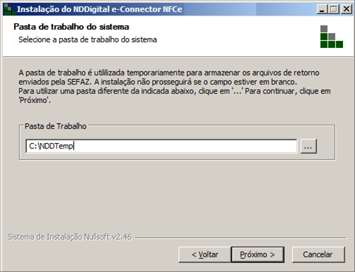 Passo 1: Execute o arquivo de instalação do e-Connector NFC-e disponibilizado pela NDDigital. Você também pode fazer o download dos instaladores acessando o site da NDDigital, efetuando seu cadastro de usuário. Para isso, acesse http://ndd.com.br/ e efetue seu cadastro.