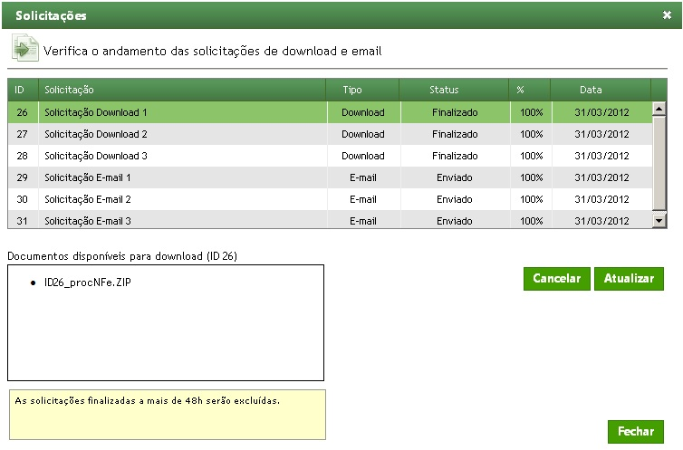 As solicitações que estejam finalizadas a mais de 48 horas serão excluídas automaticamente.