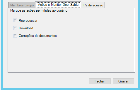 i.Selecione a aba Ações e-Monitor Doc. Saída, para marcar as ações permitidas ao usuário.