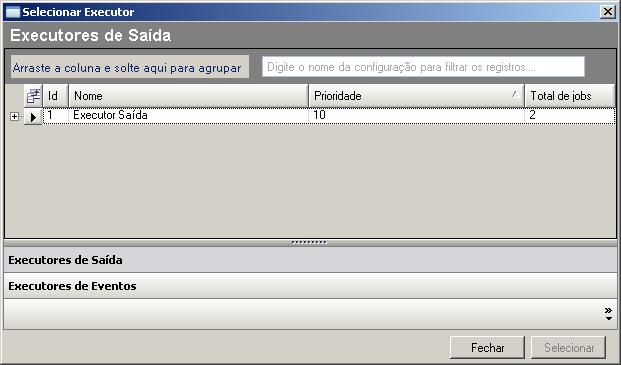 f.Para adicionar executores às instâncias, clique em . Será exibida uma tela com os executores de saída e executores de eventos disponíveis, como mostra a imagem abaixo: