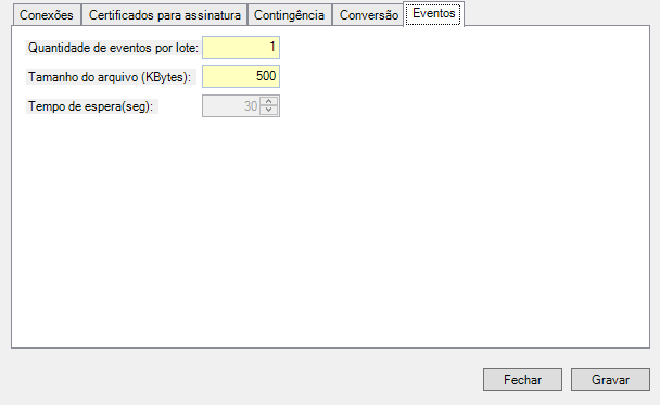 - Este campo é desabilitado quando o campo Quantidade de eventos por lote possuir o valor 1.