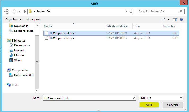 Após selecionar, clique em Abrir e posteriormente em Gravar.