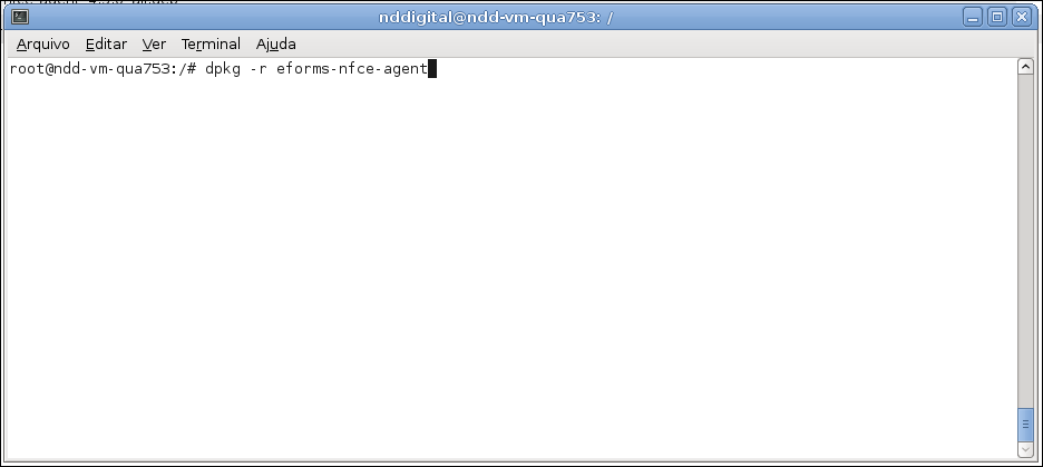 Passo 1: Para desinstalar o Agent NFC-e, acesse o terminal e execute o seguinte comando para desinstalar: