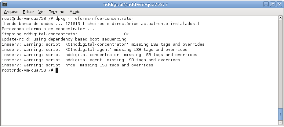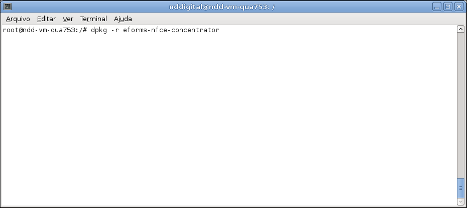 Passo 1: Para desinstalar o concentrador NFC-e, acesse o terminal e execute o seguinte comando para desinstalar: