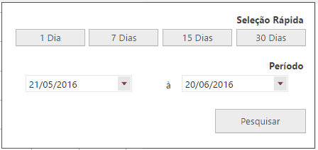 Para realizar uma pesquisa de período no histórico do e-Monitor selecione a opção de Atualizado em e informe a data utilizando a opção seleção rápida ou período, como mostra a imagem abaixo:
