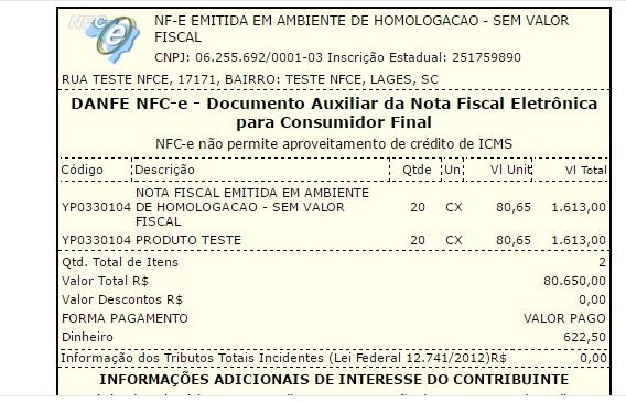 A impressão de notas pelo Cold Web segue por padrão as informações contidas na visualização rápida: