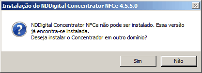 O instalador do Concentrador faz a verificação se a versão que está instalada é a mesma versão que está sendo executada pelo instalador. A tela abaixo será exibida. Caso deseje instalar em outro domínio, clique em Sim.