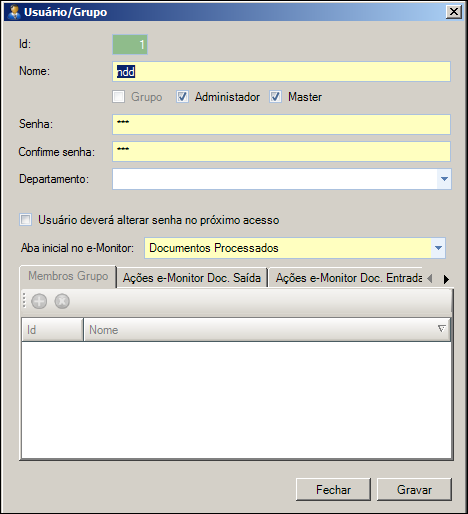 O cadastro de IPs de acesso pode ser feito tanto para usuários como para grupos. Caso não tenha nenhum IP cadastrado, qualquer máquina independente do IP poderá acessar o e-Monitor e Cold Web.