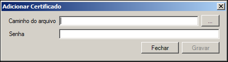 Caminho do arquivo: Informe o local de onde se encontra o certificado em extensão .pfx, pois a solução e-forms NFC-e não necessita de instalação do certificado no servidor, somente o arquivo do certificado para que mesmo seja validado no cadastro e inserido no banco de dados.