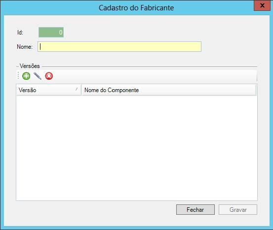 •Nome: Neste campo deverá ser escrito o nome do Fabricante. •Versões: É aqui que o usuário deverá cadastrar os Componentes juntamente das versões de cada Componente que serão utilizadas pela Contingência SAT.