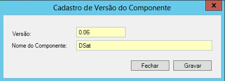 •Versão: Nesse campo deverá ser informada a versão do Componente, por padrão a versão será 0.06. •Nome do Componente: Nesse campo deverá ser informado o Nome do Componente, por padrão será DimepSat e TancaSat.