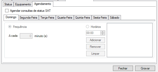 Agendar consultas de status SAT: Com esse checkbox marcado, as configurações de agendamento estarão disponíveis para cadastramento.