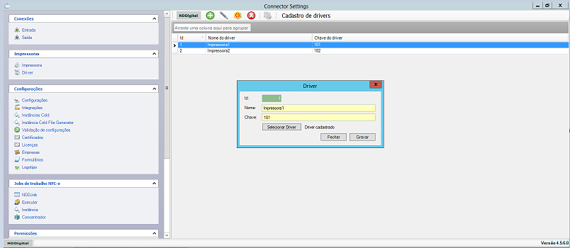 Chave: Deverá colocar a chave da impressora/driver que será utilizada.