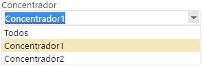 Estarão disponíveis as opções Todos, e os demais Concentradores que tenham recebido permissão de acesso para o usuário em questão.
