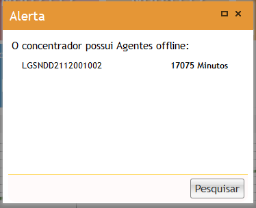 Se o status for contingência, vai abrir o popup mostrando o tempo que o concentrador está em contingência, segue imagem abaixo:
