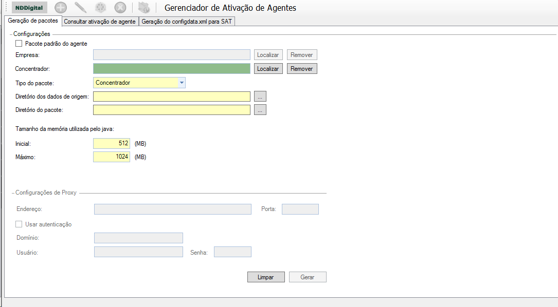 Aba Geração do configdata.xml para SAT