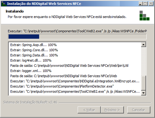 Passo 1: Execute o arquivo de instalação do Web Services NFC-e disponibilizado pela NDDigital. Você também pode fazer o download dos instaladores acessando o site da NDDigital, efetuando seu cadastro de usuário. Para isso, acesse http://ndd.com.br/.