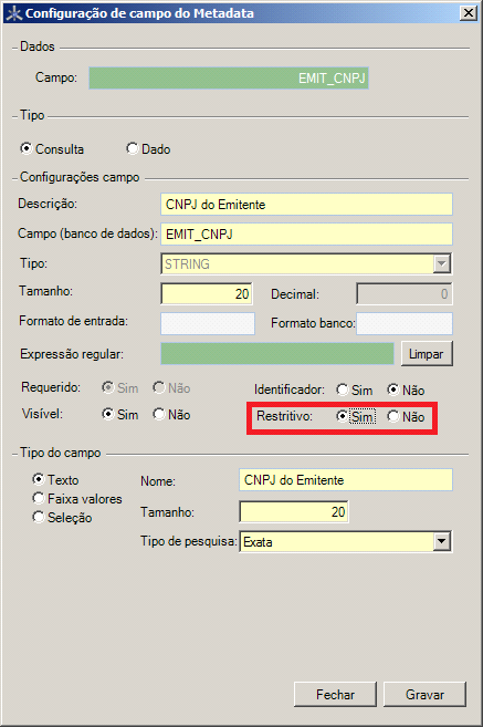 k.Marque o campo Restritivo como Sim e grave as configurações.