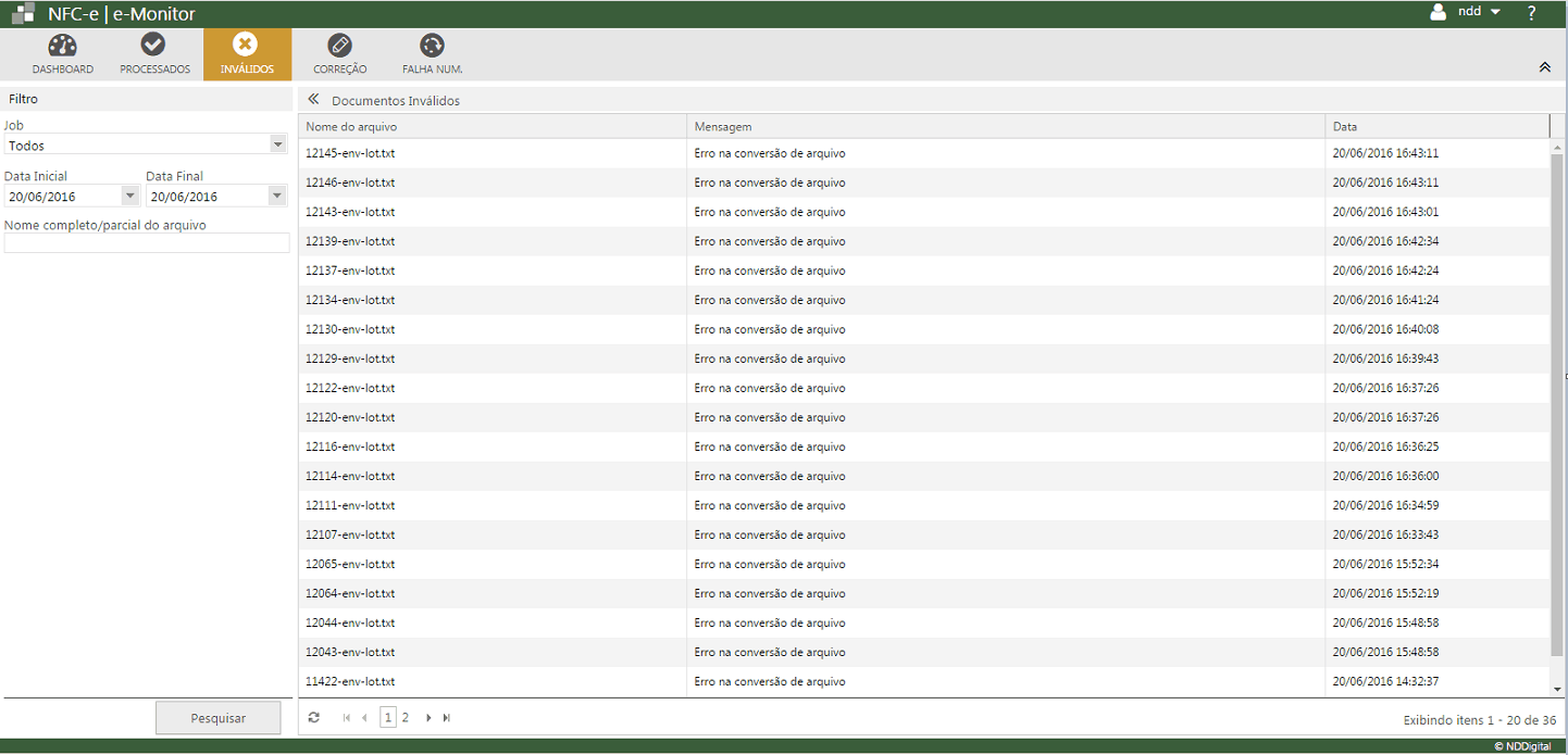 Nesta aba são exibidos os documentos capturados que apresentarem problemas de validação.
