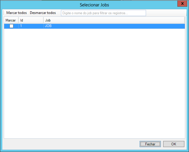 •Job: é obrigatório selecionar um Job. É possível selecionar vários Jobs simultaneamente.