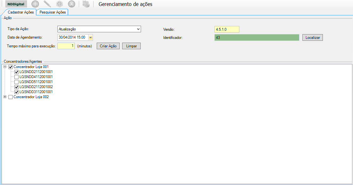 Para cada concentrador/agente selecionado deverá ser gerada uma ação.