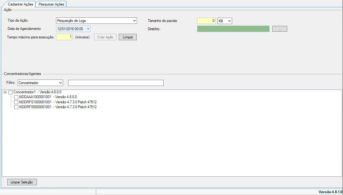 8. Para alterar o tamanho do pacote para a Requisição de Logs, basta no campo Tamanho do Pacote selecionar o padrão da unidade: