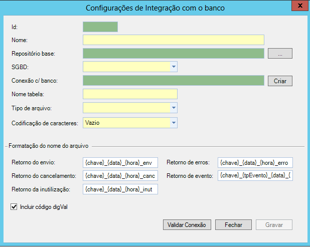 k. Quando marcada a opção Incluir código digVal será inserido o valor do DigVal no arquivo de retorno para a integração.