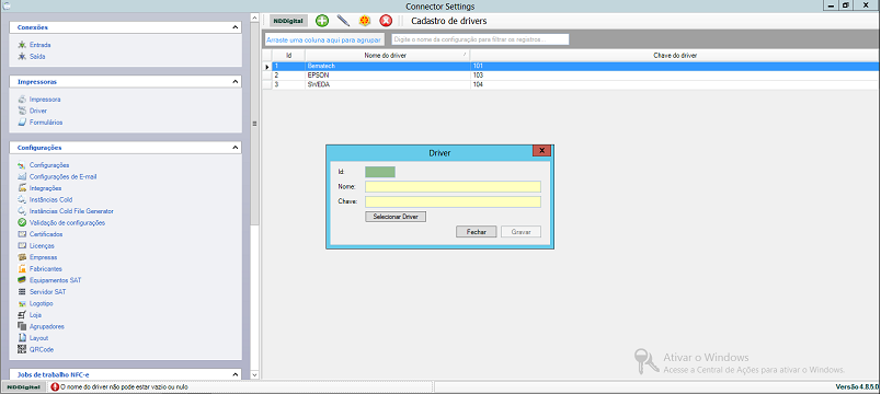 Chave: Deverá colocar a chave da impressora/driver que será utilizada.