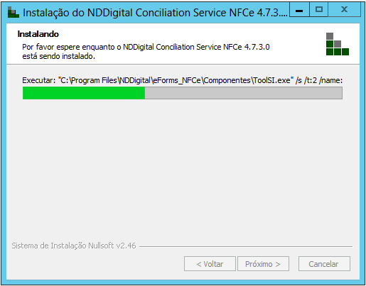 Passo 1: Execute o arquivo de instalação do Conciliation Service disponibilizado pela NDDigital. Você também pode fazer o download dos instaladores acessando o site da NDDigital, efetuando seu cadastro de usuário. Para isso, acesse www.nddigital.com.br.
